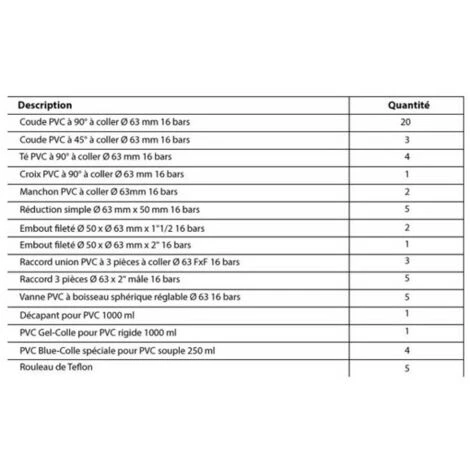 Kit complet de raccordement PVC Ø63 mm PN-16 pour piscine. – – – –