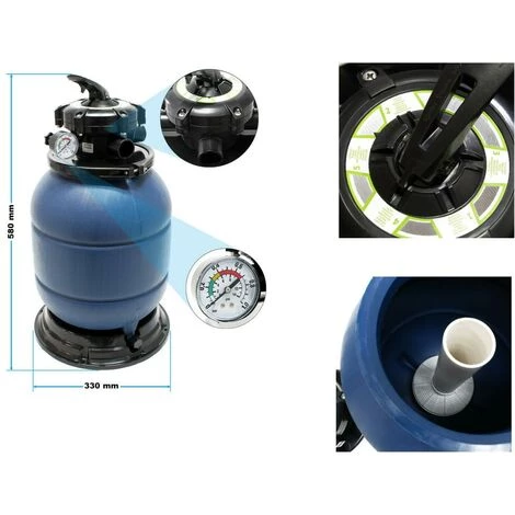 Un filtre à sable idéal pour les petites piscines et les piscines hors sol. La vanne à 5 positons avec des réglages différents permettent un écoulement maximal même sous basse pression. Le filtre offre également les options de réglage suivantes:• Filtre: Fonctionnement normal de filtre