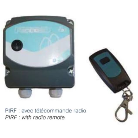 Le coffrets électriques PIRF 33 PEUT accueillir des projecteurs jusqu’à 300W. Le dispositif inclus une commande et une télécommande radio (marche / arrêt) .