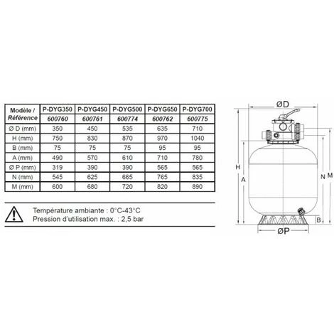 - + produitproduit Equipé d’un manomètre, d’un témoin de turbidité, d’une base circulaire injectée et d’une vanne de vidange