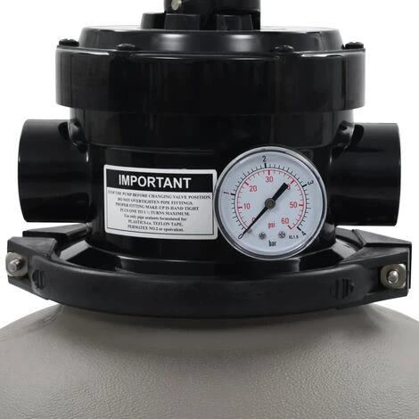 En vertu du sable comme milieu filtrant, ce filtre à sable de piscine est efficace pour filtrer et purifier l’eau de votre piscine. Il s’agit d’une option très économique et nécessitant peu d’entretien pour garder l’eau de votre piscine intacte. Fabriqué en polyéthylène haute densité, le filtre à sable est hautement durable. Ce filtre est conçu pour atteindre un débit de 7 m³/h. La pression de service maximale est de 50 PSI. Pour démarrer l’opération, 27 kg de sable filtrant (non inclus) sont nécessaires. Le filtre est équipé d’une vanne multivoie à 4 positions : filtre (pour filtrer l’eau), contre-lavage (pour nettoyer le milieu filtrant), rinçage (pour rincer le système de filtration) et hiver (pour hiver). Ce filtre à sable convient parfaitement aux pompes de piscine de 0,35-0,5 CV. Remarque : Elle peut être raccordée avec des tuyaux de diamètre de 32 mm et de diamètre de 38 mm.