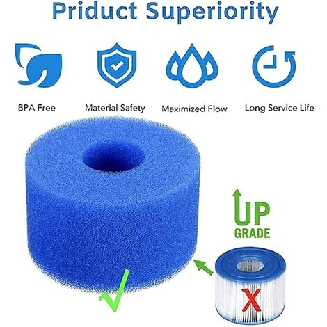 Éponge lavable: doit être nettoyé et remplacé régulièrement, pour une efficacité maximale, ce filtre de piscine de massage doit être nettoyé chaque semaine et remplacé au moins une fois par mois.