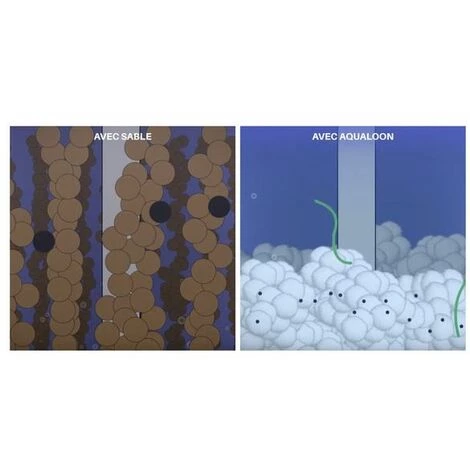 Boules filtrantes Aqualoon uniquement pour filtres à sable équipés d’un diffuseur 12 m³/h. Plus avantageuse et beaucoup plus légère que les médias filtrants existants, Aqualoon est la nouvelle façon de purifier l’eau. Elle se différencie de tous autres médias filtrants grâce à sa finesse de filtration exclusive d’un micron (1µ), là où le sable quartz 40µ, la cartouche 25µ, le diatomée, le verre recyclé = 5µ qui laissent des petites impuretés apparentes. QUANTITÉ REQUISE : – Pour un filtre à sable de 12m³/h – 4 cartons de 700g sont nécessaires. – Boules filtrantes pour filtre à sable piscine 12 m³/h Aqualoon – 4 cartons de 700g – Plus avantageuse et beaucoup plus légère que les médias filtrants existants, Aqualoon est la nouvelle façon de purifier l’eau de votre piscine – Elle se différencie de tous autres médias filtrants grâce à sa finesse de filtration exclusive d’un micron (1µ) – Economie d’énergie, économie d’énergie, Longévité extrême, Recyclable, non toxique, Extra légère pour manutention aisée